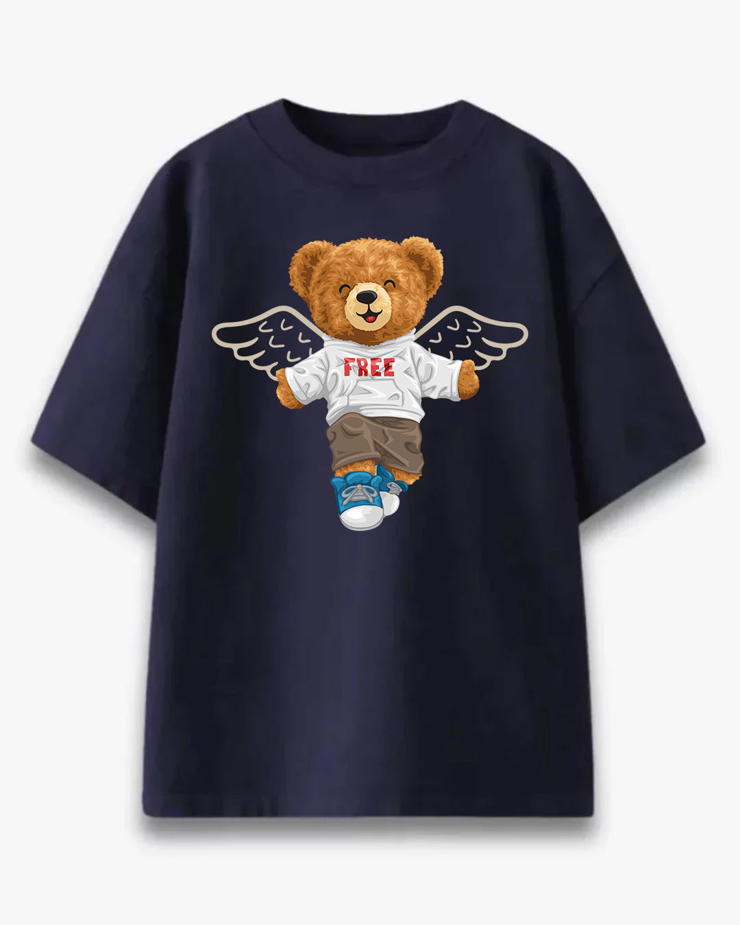 Introducing the "Free Spirit Teddy - Premium Women's Oversized T-Shirt" by Fitsouls – a trendy and comfortable fashion choice. This oversized navy blue tee combines comfort with a minimalist design, making it a versatile addition to your wardrobe, perfect for those who appreciate both fashion and simplicity.