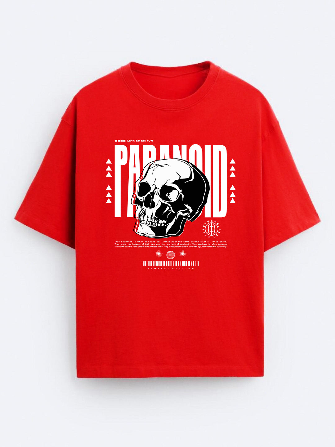 Introducing the "Paranoid Red - Premium Unisex Oversized T-Shirt" by Fitsouls – a trendy and comfortable fashion choice. This oversized red tee combines comfort with a minimalist design, making it a versatile addition to your wardrobe, perfect for those who appreciate both fashion and simplicity.