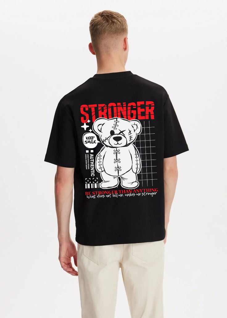 Introducing the "Stronger Black - Premium Men's Oversized T-Shirt" by Fitsouls – a trendy and comfortable fashion choice. This oversized black tee combines comfort with a minimalist design, making it a versatile addition to your wardrobe, perfect for those who appreciate both fashion and simplicity.