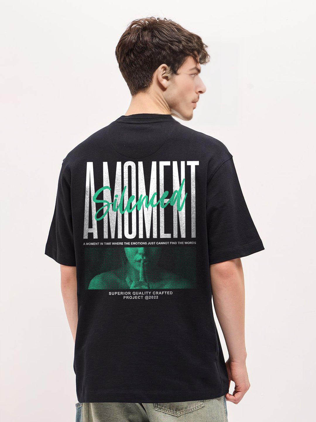 Introducing the "Moment Black - Premium Unisex Oversized T-Shirt" by Fitsouls – a trendy and comfortable fashion choice. This oversized black tee combines comfort with a minimalist design, making it a versatile addition to your wardrobe, perfect for those who appreciate both fashion and simplicity.