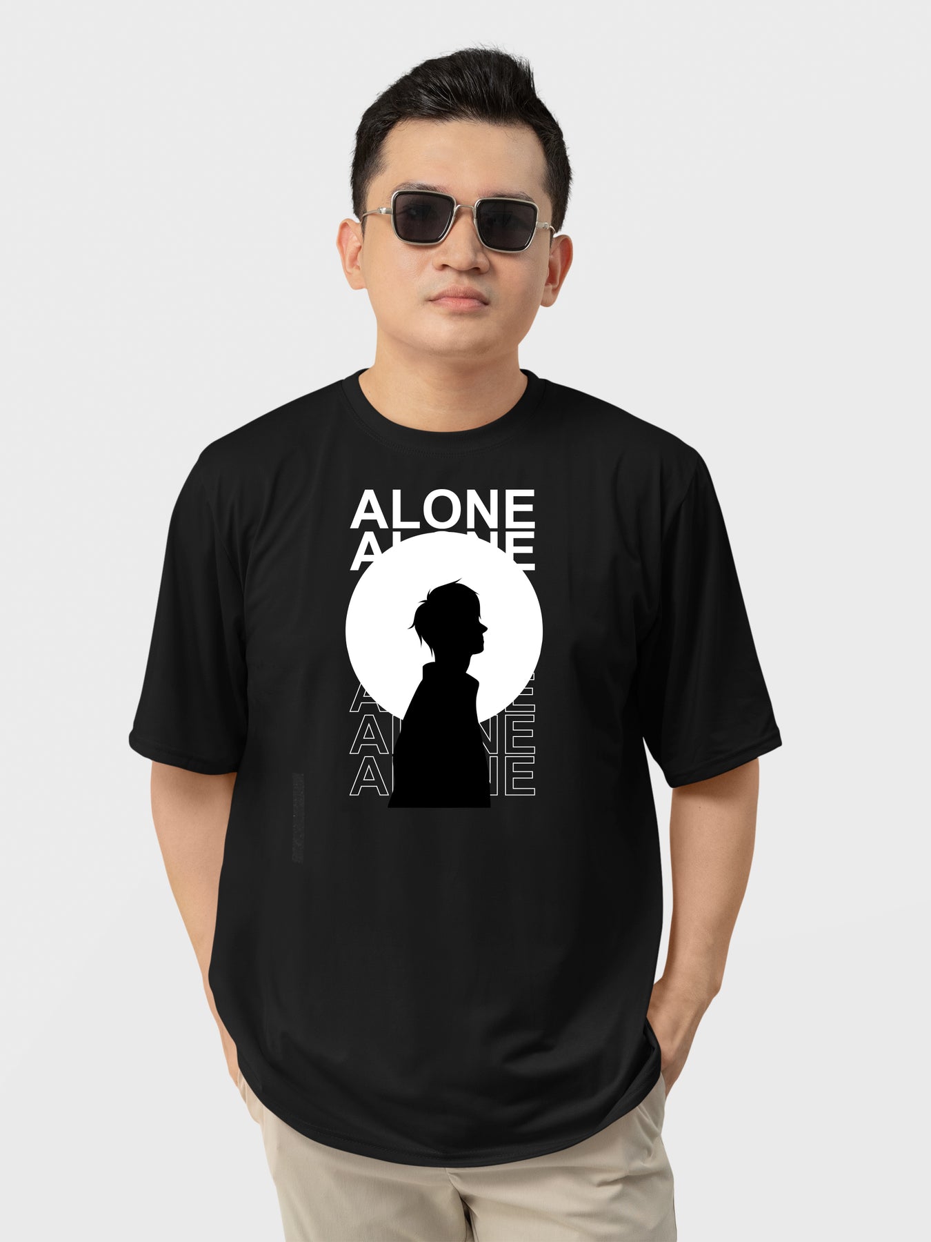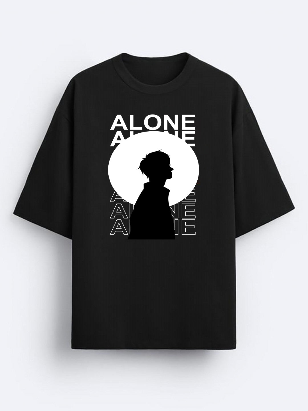 Introducing the "Alone Black Drop Shoulder - Premium Unisex Oversized T-Shirt" by Fitsouls – a trendy and comfortable fashion choice. This oversized black tee combines comfort with a minimalist design, making it a versatile addition to your wardrobe, perfect for those who appreciate both fashion and simplicity.